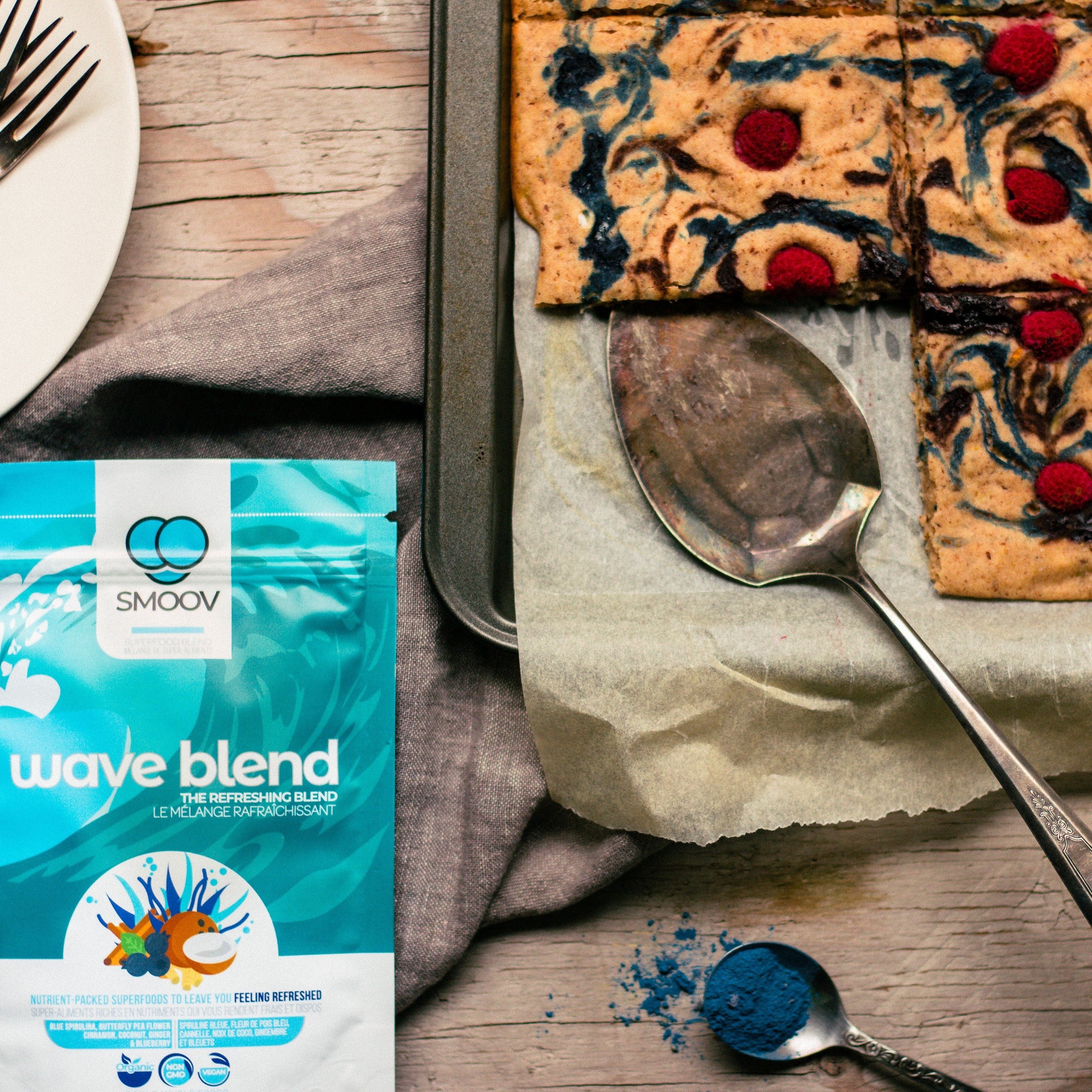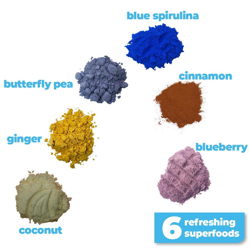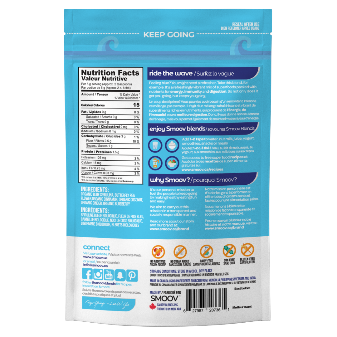 Made with 6 vibrant superfoods- it's a great source of fiber, antioxidants and micronutrients. To top it all off- it mixes into a deep emerald blue, making it perfect for lattes, smoothies and baked goods!
